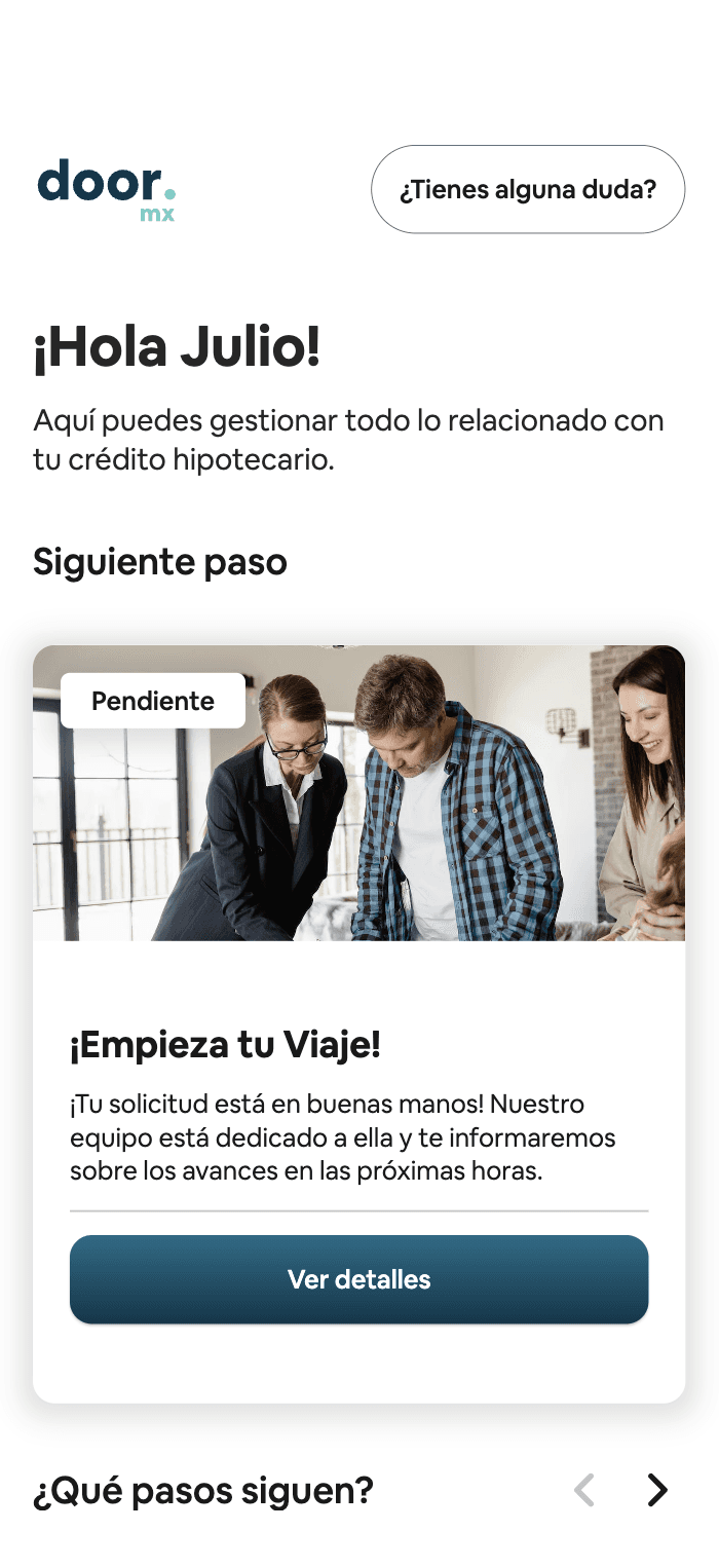 "La verdad no sabiá que un crédito hipotecario tuviera tantas variables, gracias Door y sobre todo a Andrés que me asesoró a detalle y me traducía todo lo que tenía que saber para tomar la mejor decisión."